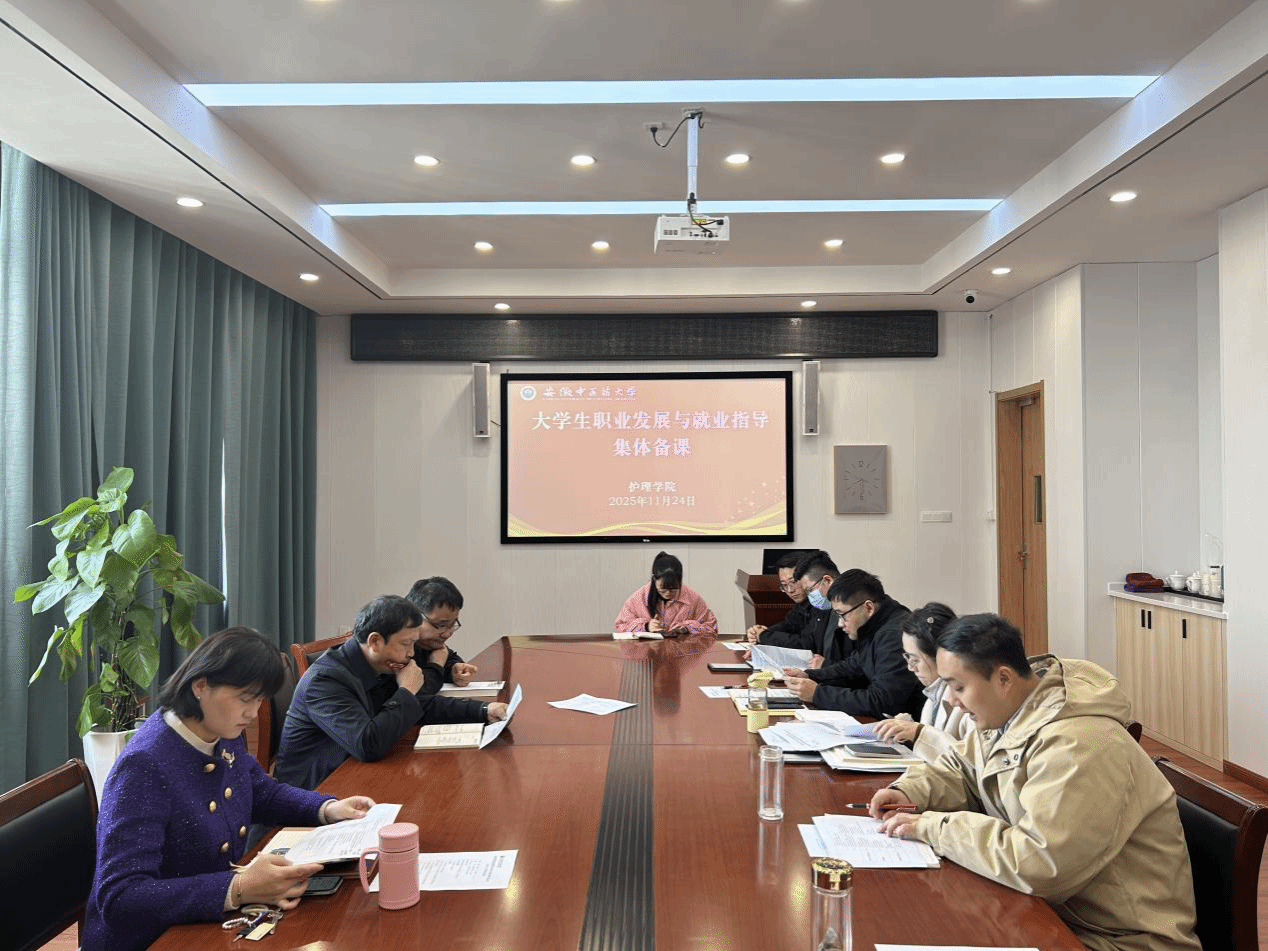2025年11月24日,护理学院组织开展大学生职业发展与就业指导课程集体备课会。与会教师围绕护理专业特色,就课程内容优化、教学方法创新及就业资源对接等议题进行了深入研讨,旨在提升课程针对性与实效性,为学生提供更精准的就业指导与服务。学院相关负责人及课程组全体教师参加备课。(赵欣宇/文 实习就业办/图 颜贵明/审核)