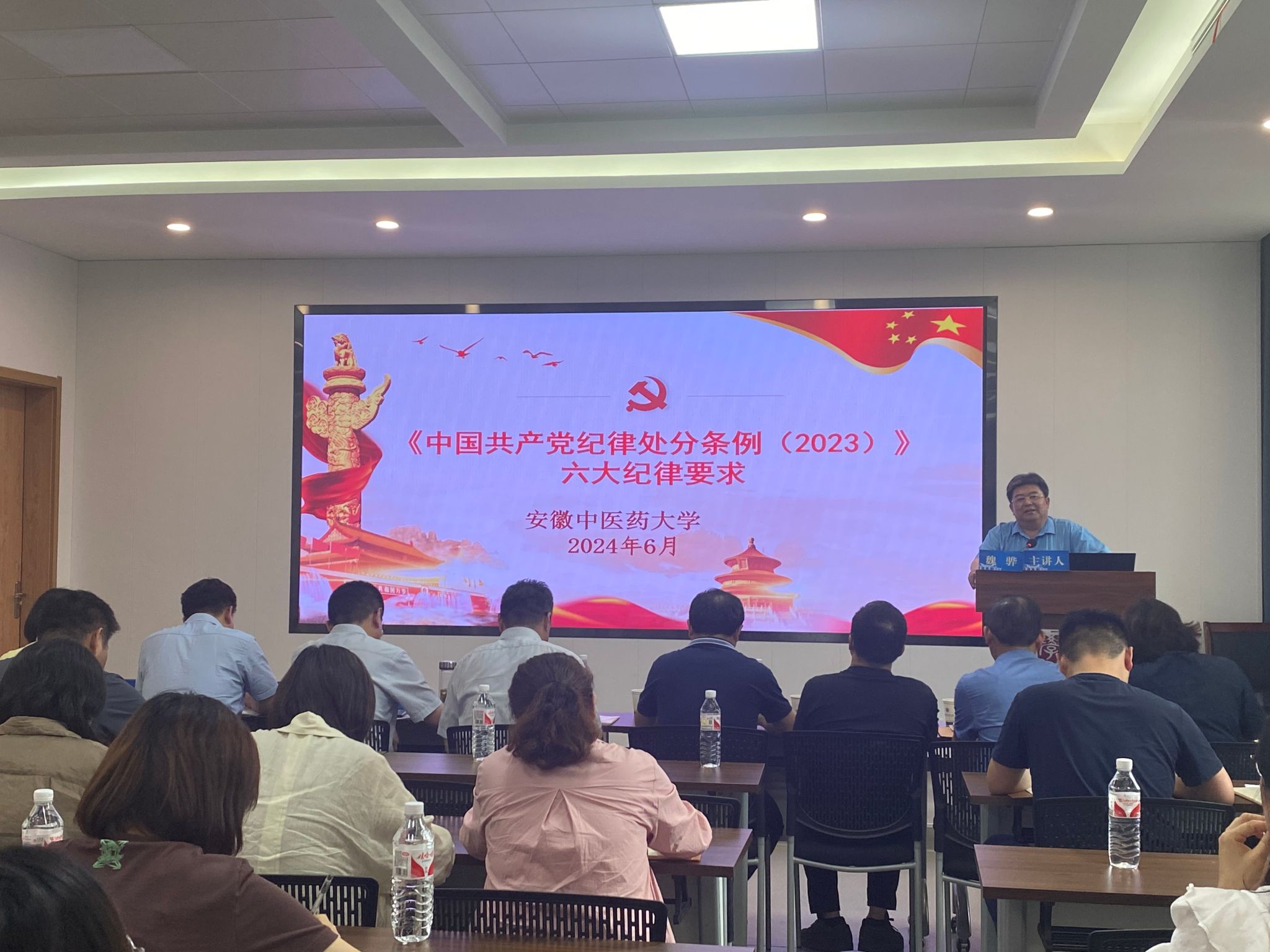 6月5日下午,校党委常委、副校长魏骅应邀为总务处、医药经济管理学院、护理学院全体教职工党员作党纪学习教育专题党课。