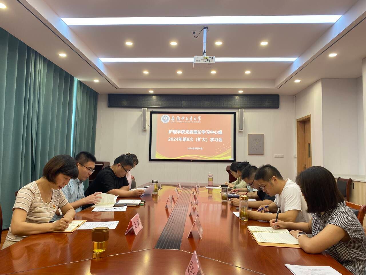 8月30日下午,护理学院召开党委理论学习中心组2024年第8次(扩大)学习会,学院党委理论学习中心组成员和全体支部书记参加会议。会议由学院党委书记苏本江主持。