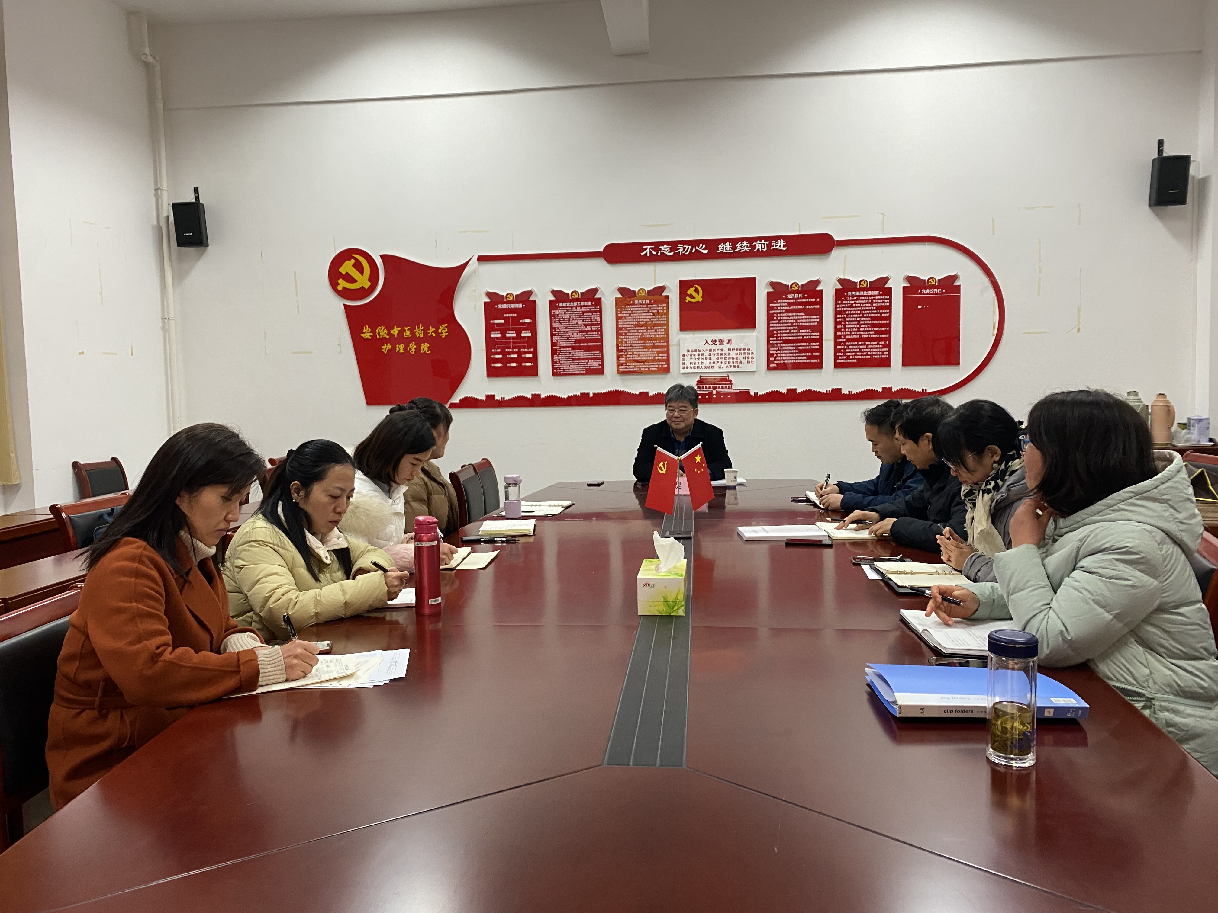 11月30日下午,学校党委常委、副校长魏骅在护理学院党群活动室,为护理学院教工第二党支部宣讲党的二十大精神,宣讲主题为《坚持中国式现代化发展之路,传承创新发展中医药》。护理学院教工第二党支部全体党员教师聆听学习,会议由教工第二党支部书记方海雁主持。
