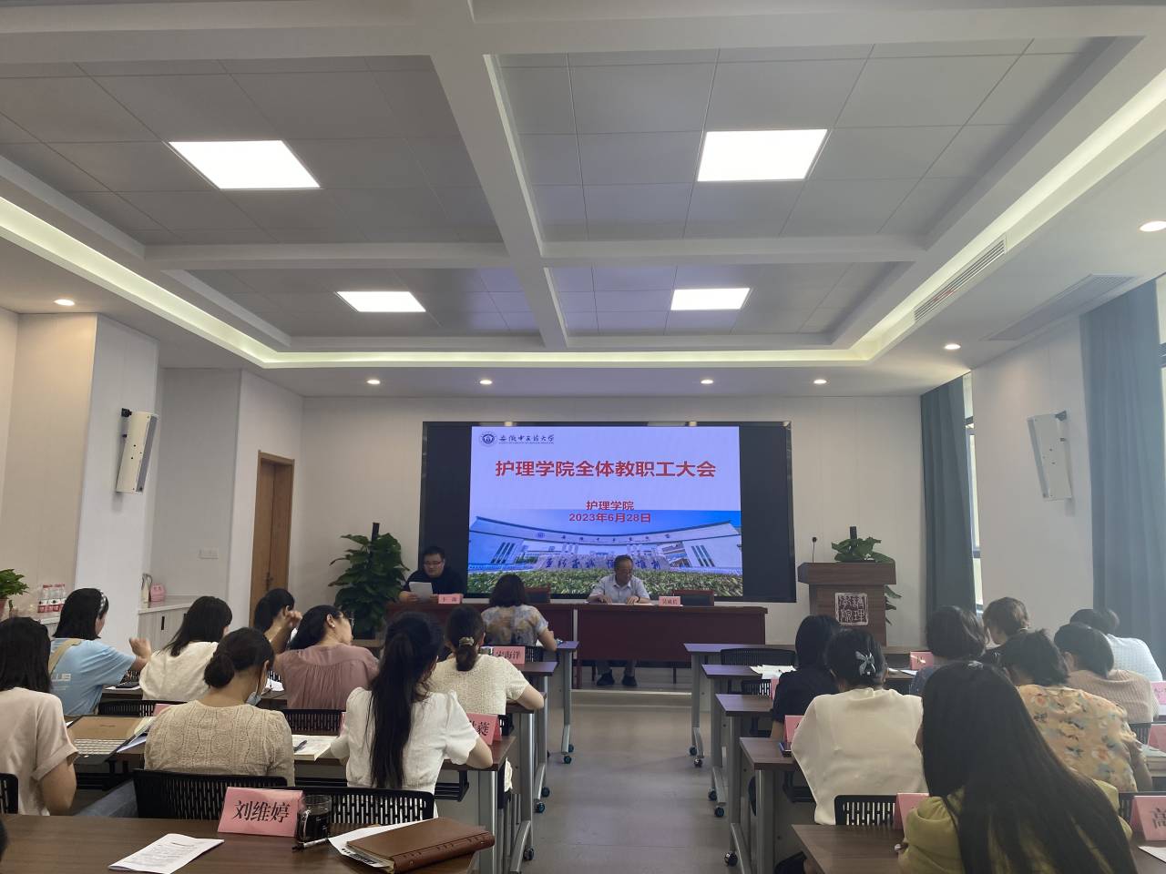 2023年6月28日下午,护理学院在B7-447会议室召开全体教师大会。护理学院全体教师参会,会议由护理学院党委书记吴成长主持。