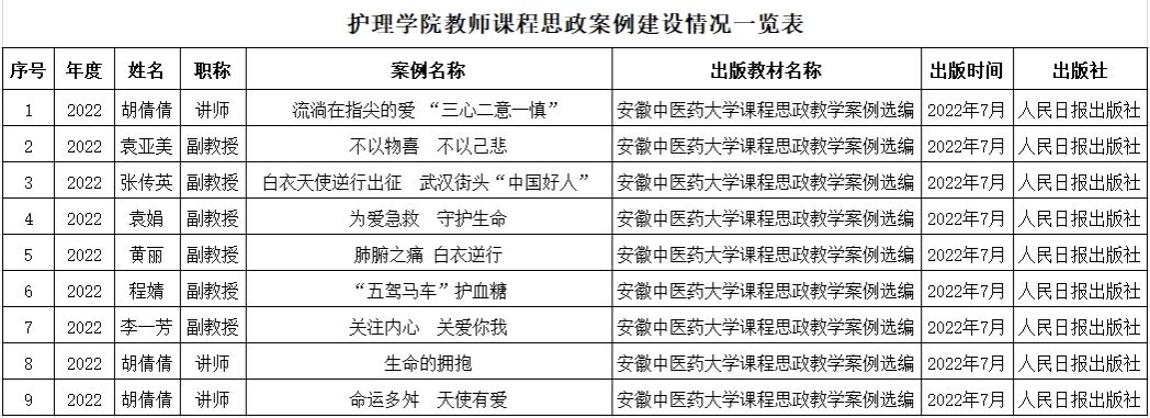 同时,学院鼓励教师在培养人才的过程中注意将课程教学与思政教学紧密融合并鼓励教师积极参与思政教学比赛,提升思政教育教学的能力。2022年,学院课程思政建设成果显著。学院教师在全国课程思政示范案例教学大赛获得特等奖和二等奖的佳绩,同时也在安徽省课程思政案例征集比赛中,分别或一等奖、二等奖和三等奖的好成绩。学院一直秉承以赛促教,不断提升教师育人的能力的宗旨,以比赛为契机,全面提升学院教师教学能力,为护理专业人才培养奠定坚实的师资基础。