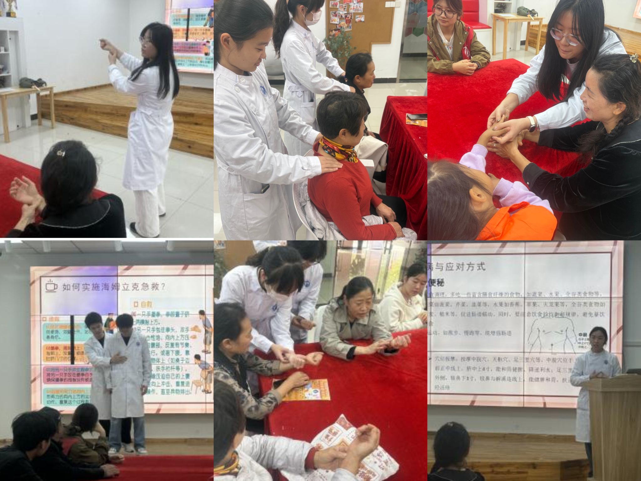 11月1日,护理学院分团委联合《社区护理学》课程组,组织师生志愿者走进新站区磨店社区,开展以“防摔防噎,中医养生”为主题的老年健康科普志愿服务活动。