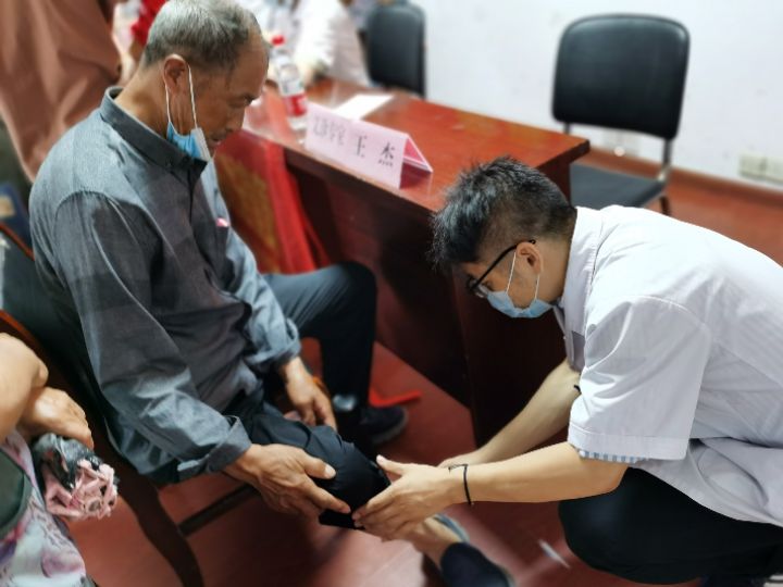 一位老人拄着拐杖腿脚不方便却一路蹒跚走来,志愿者见状立即去搀扶老人,奶奶小心翼翼地来到义诊专家面前,还未等到老人开口描述病情,义诊专家就已经热情地询问奶奶的病情和疾病的主要症状,奶奶表示有高血压、糖尿病、血脂也高,常年受着疾病的影响,因此吃不好、睡不好。义诊专家对她说日常生活中饮食要清淡少吃盐和油类食物、适当运动、保持体重等并开一些中医药房进行日常调理和养生。奶奶走时并没有多说什么话,只是竖起来一个大拇指,那笑容已经是对这次看诊最好的诠释。这是一场成功的义诊,带来的不仅是简单的血压血糖体验和医学诊断,更是为社区老人带来温暖和心灵的慰藉。在为人民服务的同时,无形中推动中医药文化的发展和传播。