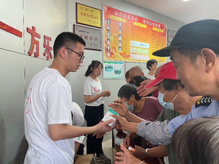 最后,志愿者免费分发感冒药、退烧药、防中暑药以及抗过敏等常用药物,居民们有序排队领取药物,志愿者们在送药的同时,向居民们介绍药品的功效以及禁忌症,让居民明白药之所用。这次免费送药活动不仅从物质上支持群众,而且用最真挚的语言和全心全意的服务打动每一个居民的心,用实际行动把“为百姓做实事”贯彻落实,守护一方乐土,提高人民归属感、幸福感以及安全感。