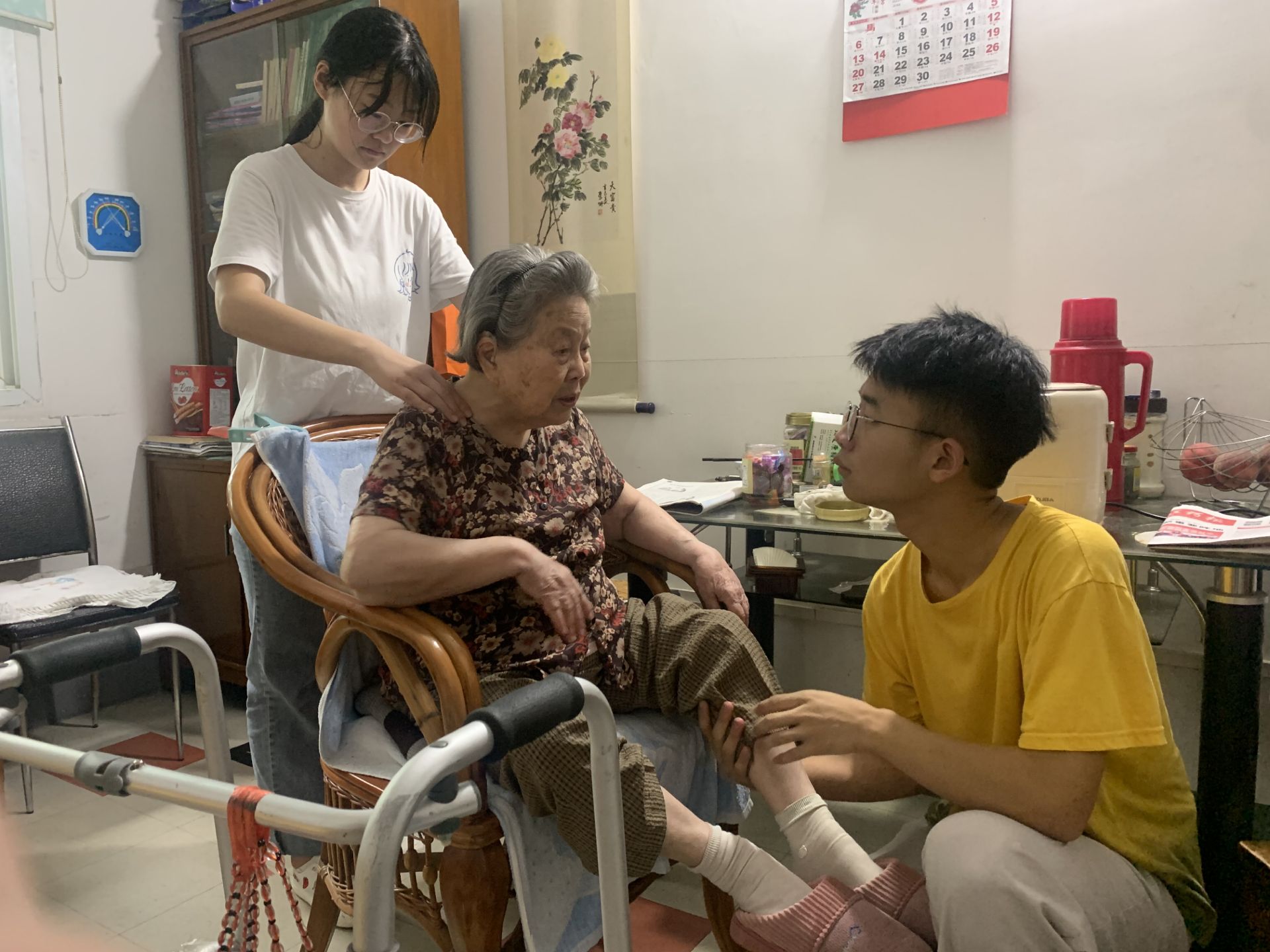 在徐建明老师家中,同学们向徐老师在学校发展、教书育人等方面做出的贡献致以崇高敬意。90岁高龄的徐老师与同学们亲切交谈,同学们关心慰问徐老师的身体状况和生活情况,帮助徐老师打扫家中卫生、提供了简单的按摩推拿等服务。在专业上,徐老师亲切地与同学们分享中医内科学知识。徐老师拿出珍藏多年的老照片,为同学们讲述自己的教学故事,分享教书育人的心路历程,为学生成长成才路上提供了积极的指导和启发,同学们充分领略到桃李满天下的师者风采。