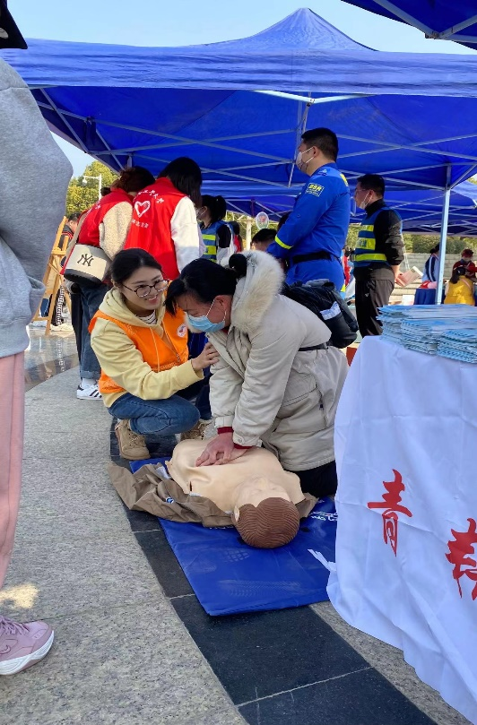 活动中师生们向到场的社区居民介绍了心肺复苏、海姆立克法、家庭常用避险知识等急救知识。对相关急救知识进行实操演示,并根据自己制作的健康教育手册详细讲解了社区常见慢性病预防保健知识。此次活动受到了社区居民的一致好评。