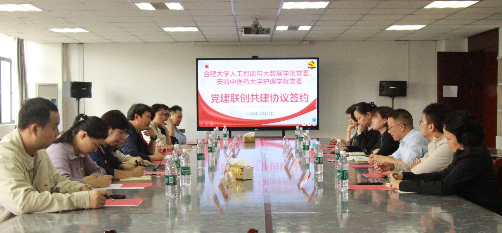 10月17日下午,护理学院党委与合肥大学人工智能与大数据学院党委,在合肥大学36栋305会议室联合举行党建联创共建签约活动。两院党委班子成员、各党支部书记等二十余名代表齐聚现场,共商合作事宜。