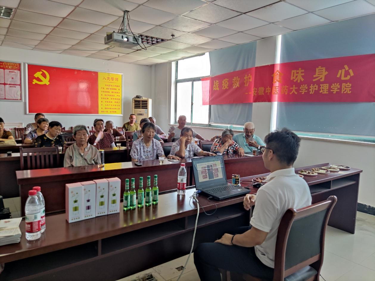 活动现场,由护理学院党委书记吴成长、安徽省中西医结合医院副主任医师孔令洋、主治医师卢尹凤以及护理学院王杰老师为居民进行义诊,并解答他们日常生活中遇到的健康问题,指导他们合理膳食、合理锻炼、定期体检。青年志愿者们为前来咨询的居民免费测量血压、血糖,询问近期血压控制情况及日常用药情况,此外还为居民提供按摩推拿、中医茶饮等服务。师生一行耐心细致、热情周到的服务收获了三十头社区乡亲们的一致好评。