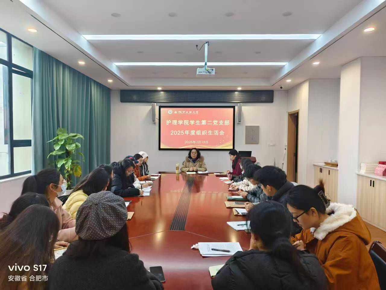 2026年3月18日,护理学院学生第二党支部召开2025年度组织生活会暨民主评议党员大会。会议紧扣“锲而不舍落实中央八项规定精神,推进作风建设常态化长效化”主题,全体党员参会。