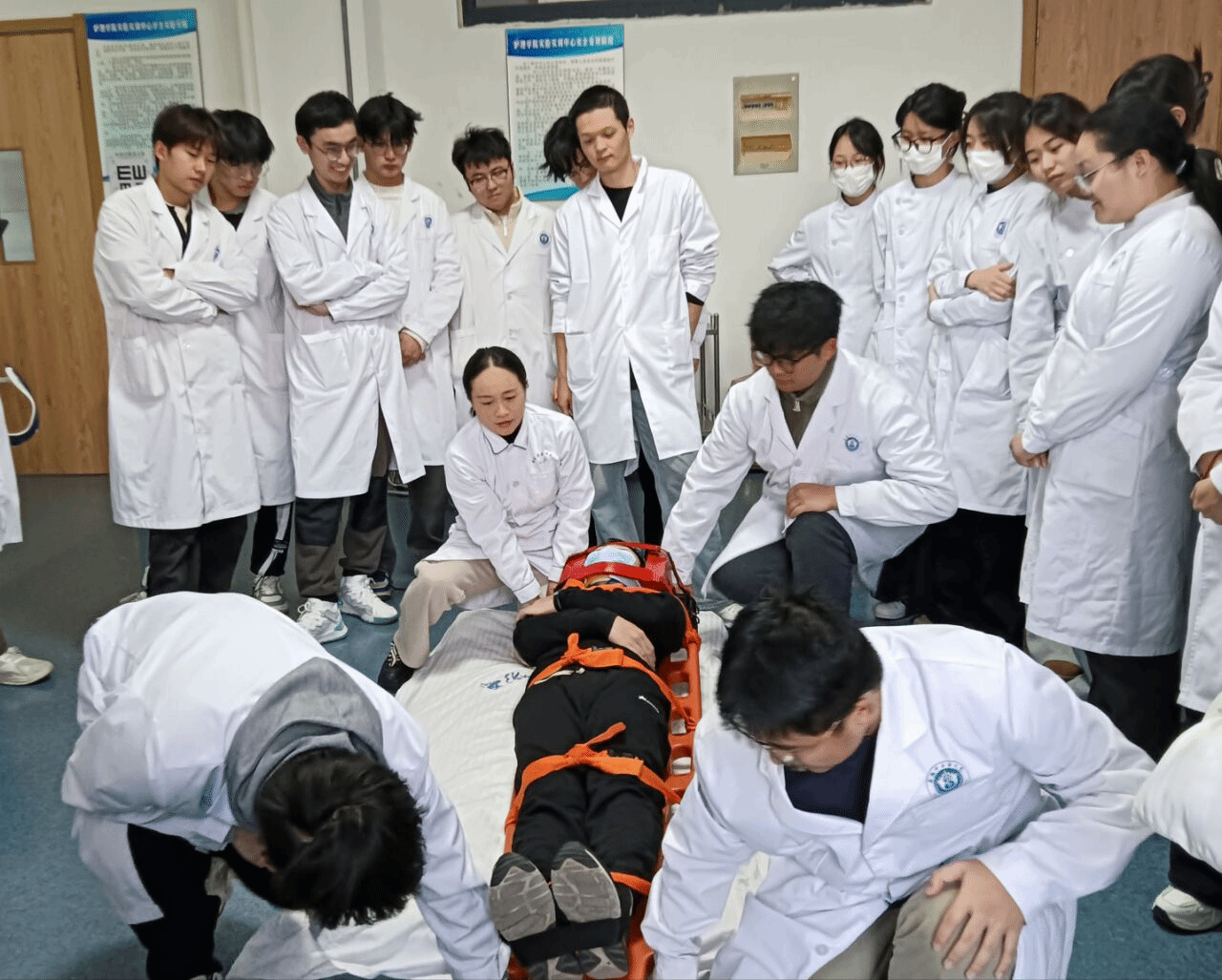 12 月 10 日下午,护理学院急救与社区护理教研室成功举办《急危重症护理学》固定搬运专项观摩课。本次活动特别邀请安徽省中医院急诊科舒婵娟主管护士担任主讲导师,以临床实景教学为核心,为 2023 级护理专业学生带来沉浸式实战培训,课程组全体教师全程参与观摩与教学研讨。