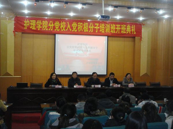 经学校党委组织部批准,近日,护理学院分党校第41期入党积极分子培训班在图书馆学术报告厅举行开班典礼。校组织部部长王道和、副部长胡卿,护理学院党政领导及学生党支部书记参加了开班典礼。护理学院许晓燕副书记主持了开班典礼。