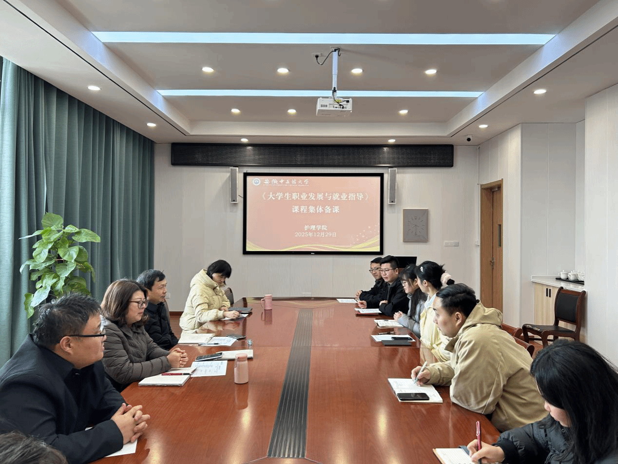 2025年12月29日,护理学院开展职业发展与就业指导课程集体备课。课程组全体教师及学院教学督导参会,围绕急救操作标准化教学、临床案例融入课堂、实训考核体系优化等核心议题展开研讨,着力解决教学重难点问题。